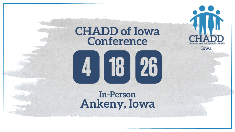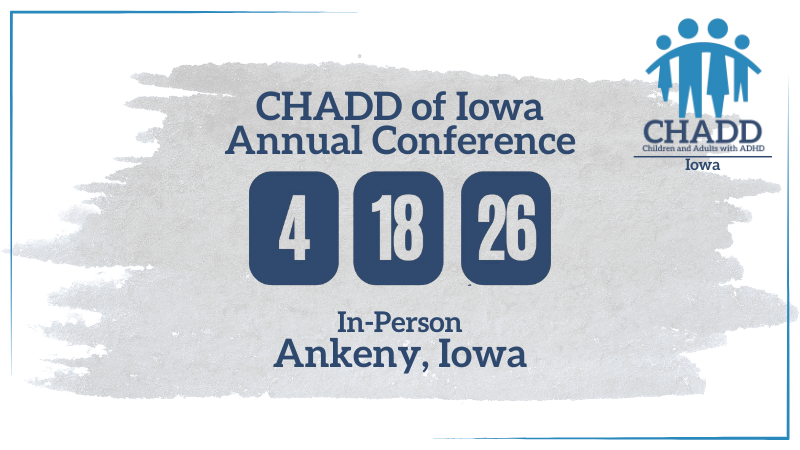 For additional information regarding the conference agenda or on-site details, please contact CHADD of Iowa at Iowa@CHADD.org.