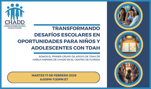 Para mas información: CHADD-CentralFlorida@CHADD.org