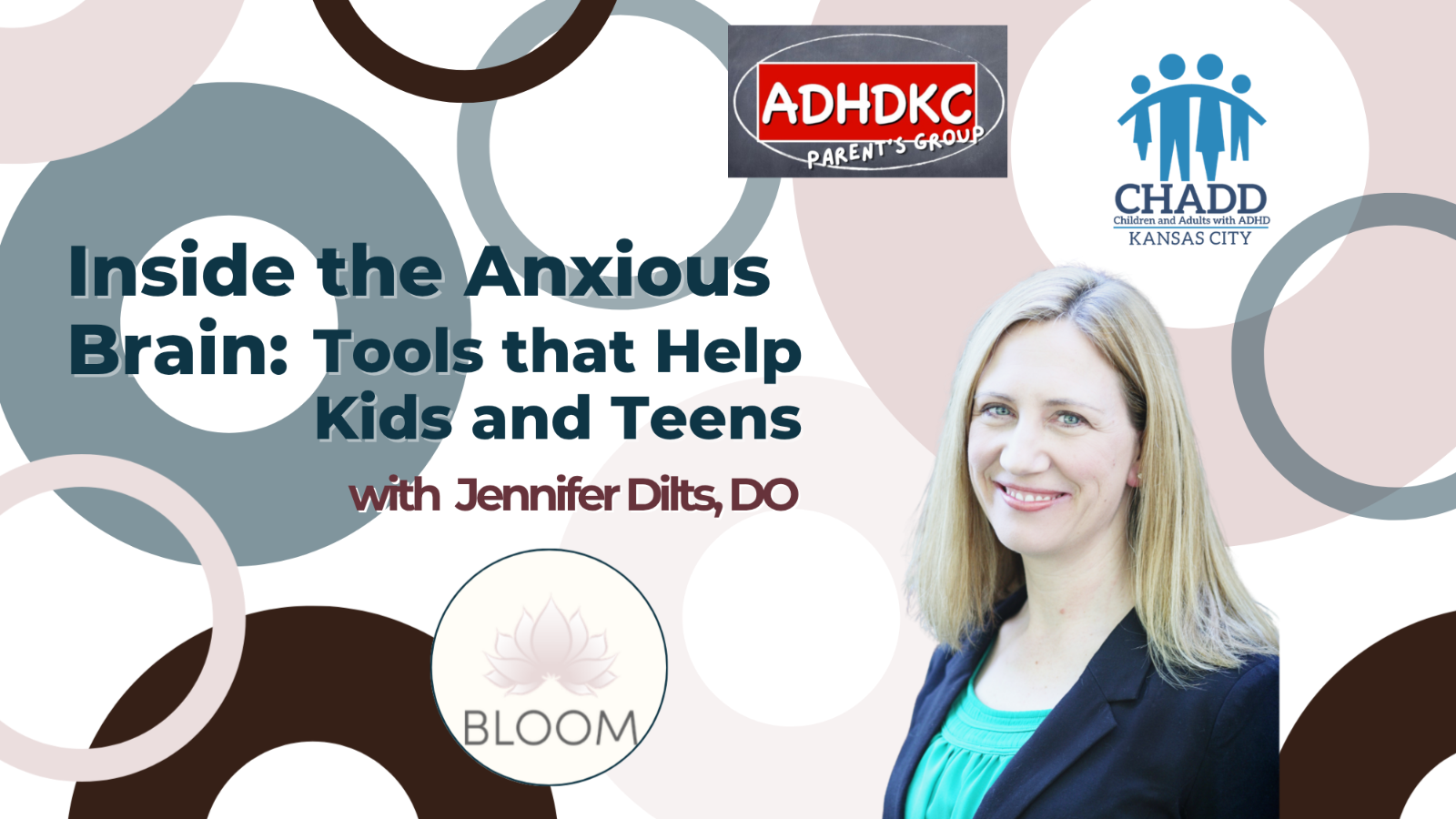 Join ADHDKC CHADD in this practical and empowering session, as Jennifer Dilts, DO, will guide parents through science-backed strategies to help kids and teens move through anxiety with confidence. Learn how anxious brains and bodies work and how to respond in ways that build resilience rather than reinforce fear, including: